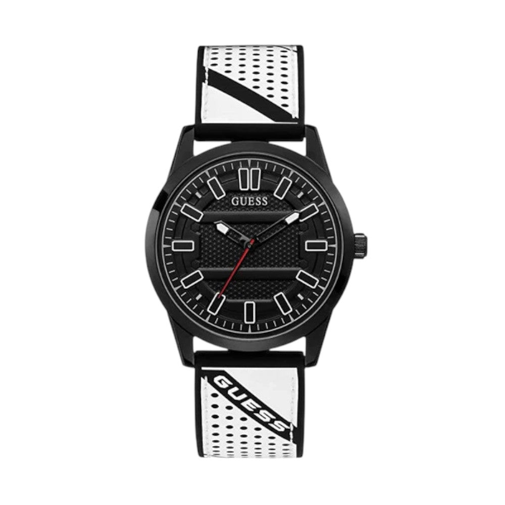 Die Guess Streak Uhr für Herren ist ein Must-Have für alle, die Stil und Funktionalität in einem Accessoire suchen. Mit ihrem robusten schwarzen Edelstahlgehäuse, dem klaren schwarzen Zifferblatt und dem komfortablen weißen Silikonarmband ist diese Uhr perfekt für den Alltag und sportliche Aktivitäten geeignet. Setzen Sie ein Statement mit der eleganten und zugleich praktischen Guess Streak Uhr.