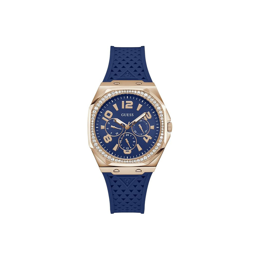 Die Guess Zest ist ein Meisterwerk moderner Uhrmacherkunst für Damen, die Stil und Funktion schätzen. Ihre Kombination aus edlem Roségold und kräftigem Blau schafft eine einzigartige Optik, die sowohl im Alltag als auch zu besonderen Anlässen wirkt. Die Guess Zest bringt frischen Wind in jede Schmucksammlung und zeigt, wie moderne Eleganz und zuverlässige Technik sich in einem Accessoire vereinen. Für alle, die ein stilvolles Statement setzen wollen – mit der Guess Zest liegen Sie genau richtig.