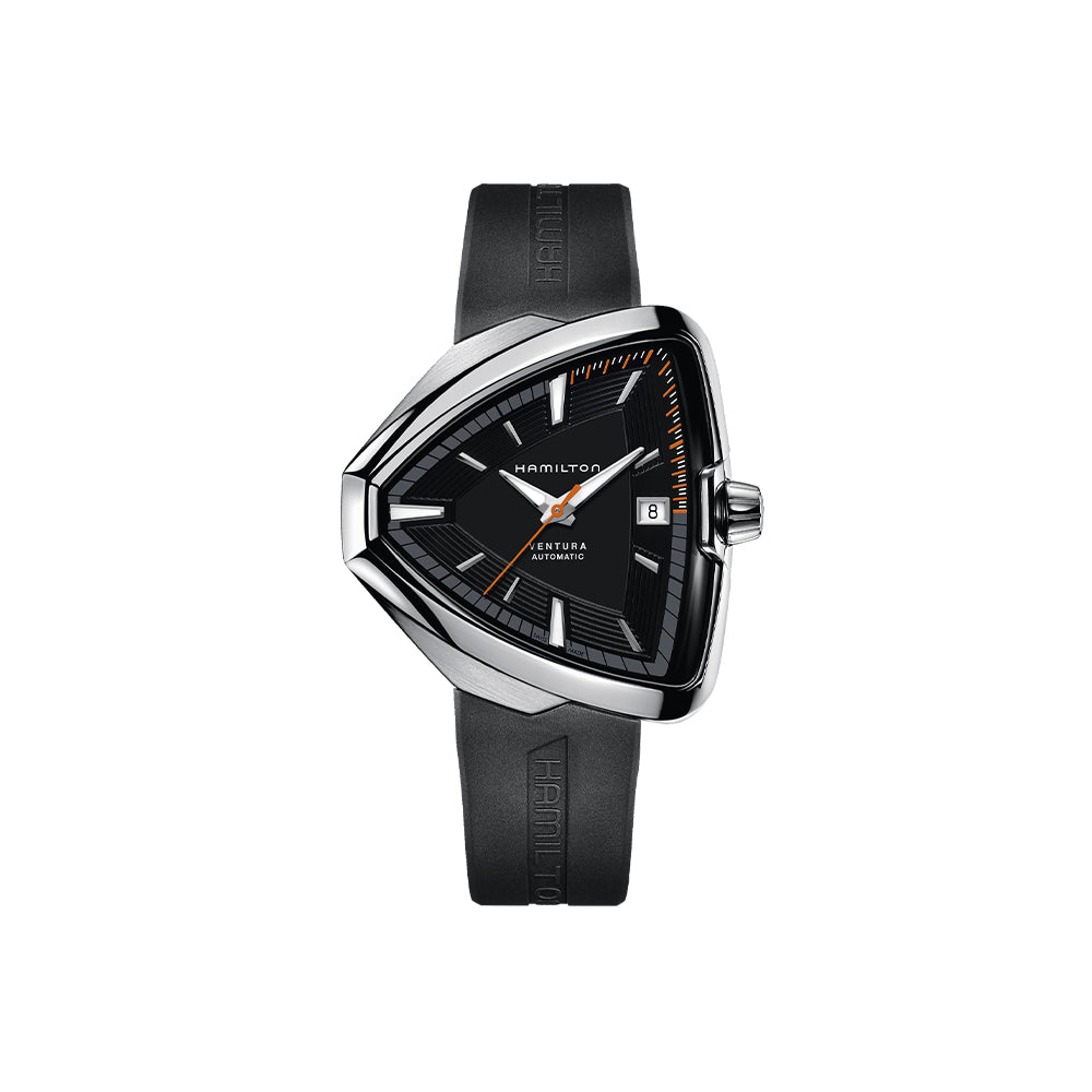 Die Hamilton Ventura Elvis80 Auto (Artikelnummer: H24555331) ist eine würdige Hommage an den legendären Elvis Presley, der als größter Fan dieses ikonischen Modells gilt. Angetrieben vom zuverlässigen H-10 Automatikwerk, bietet die Uhr eine beeindruckende Gangreserve von 80 Stunden, was auch an das 80. Geburtsjahr des King of Rock 'n' Roll im Jahr 2015 erinnert. Die charakteristische dreieckige Form des Edelstahlgehäuses, kombiniert mit einem sportlichen Kautschukarmband und roten Akzenten, verleiht der Uhr ein zeitloses, aber modernes Design.