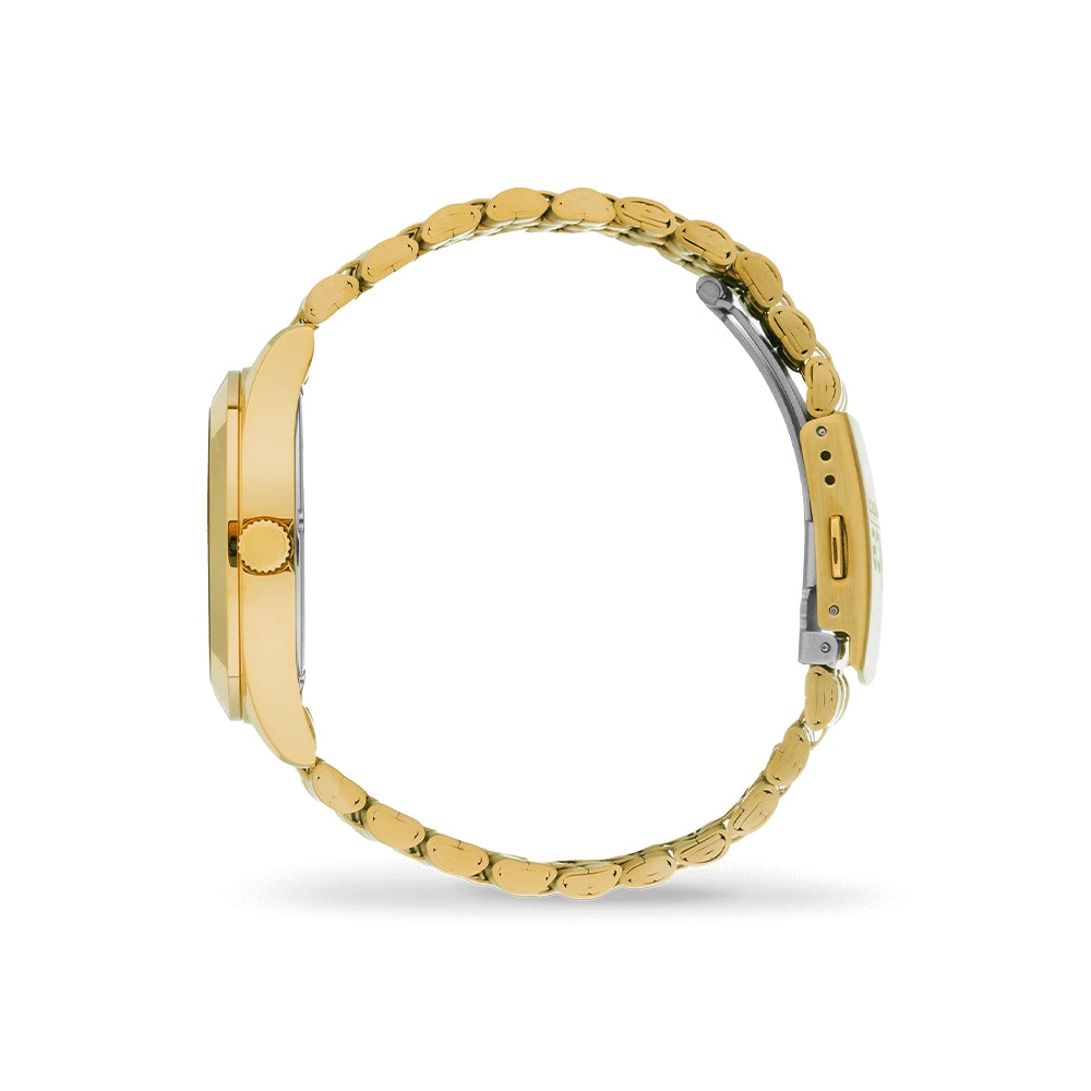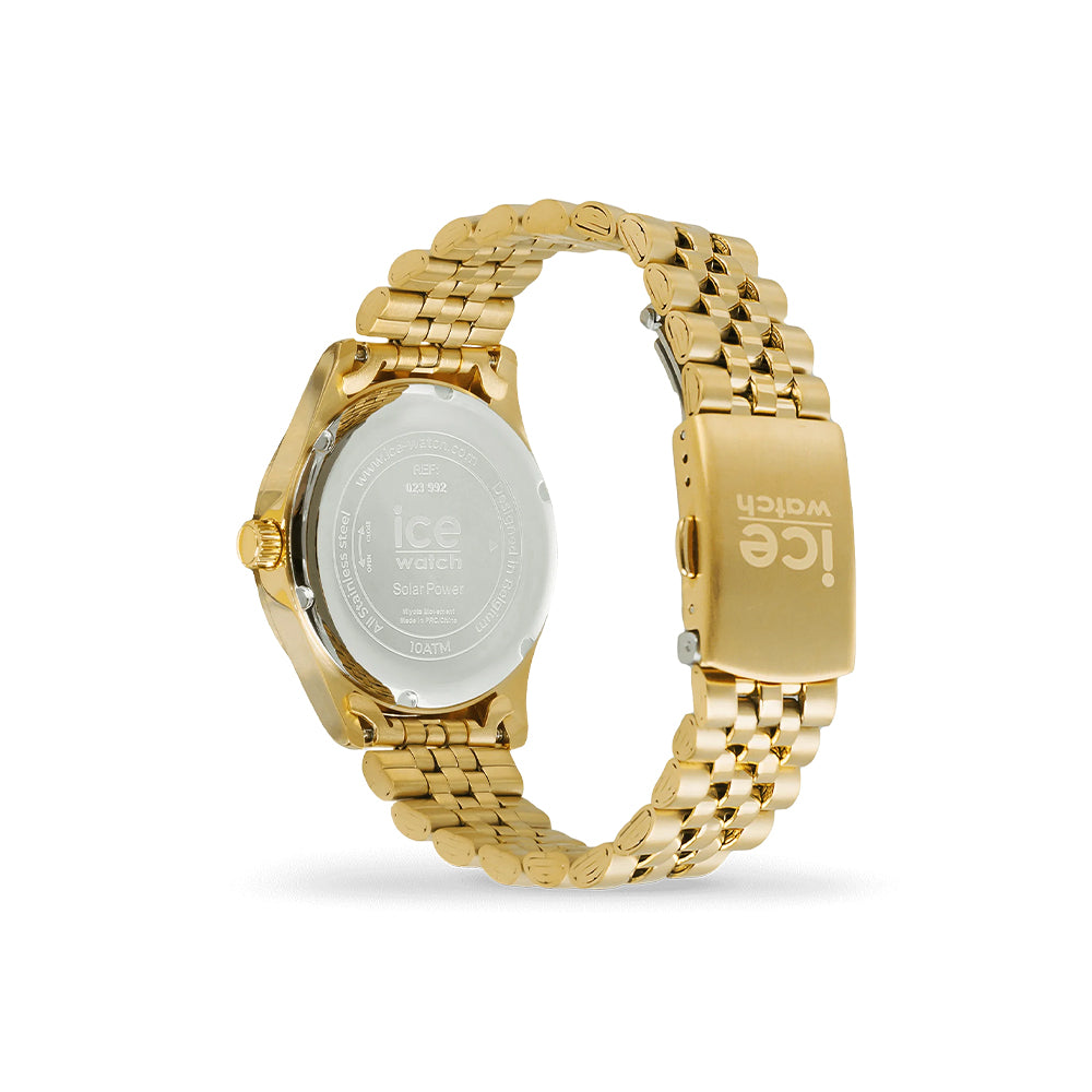 Die Ice-Watch Ice Steel Gold Rainbow (S) (Artikelnummer: 023992) kombiniert den luxuriösen Glanz von vergoldetem Edelstahl mit einem faszinierenden Regenbogen-Zifferblatt, das jedem Outfit einen subtilen, vibrierenden Touch verleiht. Das goldfarbene Mesh-Armband und das Gehäuse aus Edelstahl unterstreichen das edle Design dieser Uhr. Sie ist mit einem zuverlässigen Miyota 2070 Solar-Uhrwerk ausgestattet, das sich durch natürliches oder künstliches Licht auflädt, sodass eine lange Akkulaufzeit gewährleistet ist. Zudem sorgt die 10 ATM Wasserdichtigkeit für einen praktischen Einsatz im Alltag.