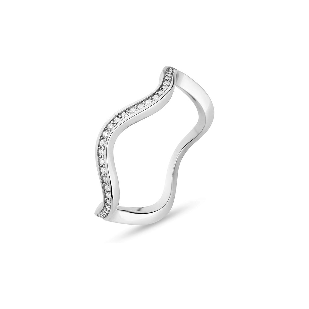 Der JETTE Damenring WAVES (Artikelnummer: 89193537) besticht durch seinen eleganten und wellenförmigen Look, der die sanfte Kraft der Natur symbolisiert. Aus rhodiniertem 925er Silber gefertigt, verleiht ihm die polierte Oberfläche eine stilvolle Ausstrahlung, während der weiße Zirkonia-Farbstein einen strahlenden Akzent setzt. Der Ring überzeugt durch Leichtigkeit und filigranes Design und ist damit das ideale Accessoire für den modernen Stil.