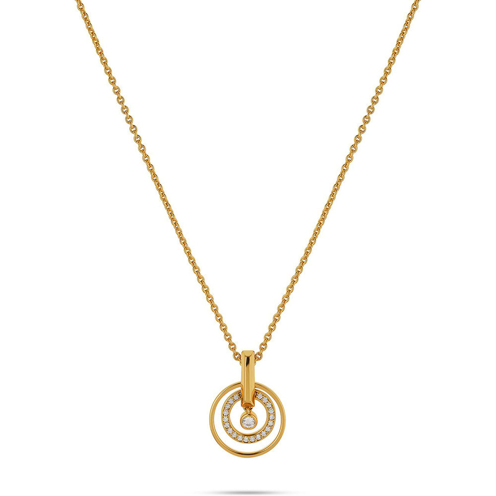 Die JETTE Kette TURN (Artikelnummer: 89193422) kombiniert hochwertige Materialien mit zeitloser Eleganz. Dieses Schmuckstück aus recyceltem 925er Silber wurde mit einer luxuriösen 18-Karat-Vergoldung veredelt und strahlt in polierter Optik. Ein bezaubernder Anhänger mit funkelnden weißen Zirkonia-Steinen ergänzt das Design und sorgt für einen eleganten Look. Mit einer Länge von 45 cm und einer Verlängerung um 3 cm bietet die Kette vielseitige Tragemöglichkeiten und passt sich Ihrem Stil perfekt an.