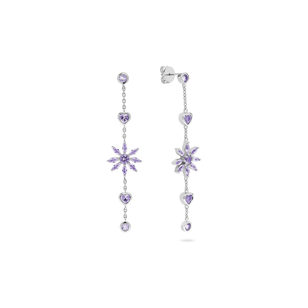 Die JETTE Ohrhänger DAISIES GARDEN sind ein wunderschönes Schmuckstück, das Eleganz und florale Leichtigkeit in perfekter Weise miteinander vereint. Der feine Rhodineffekt und das recycelte Silber machen diese Ohrhänger zu einem umweltbewussten, aber gleichzeitig luxuriösen Accessoire. Die zarten lila Zirkonia-Steine setzen einen hübschen Akzent und lassen die Ohrhänger im Licht erstrahlen. Diese Ohrhänger sind die perfekte Wahl für Damen, die auf der Suche nach einem charmanten und eleganten Schmuckstück sind, das sowohl im Alltag als auch zu besonderen Anlässen perfekt zur Geltung kommt.