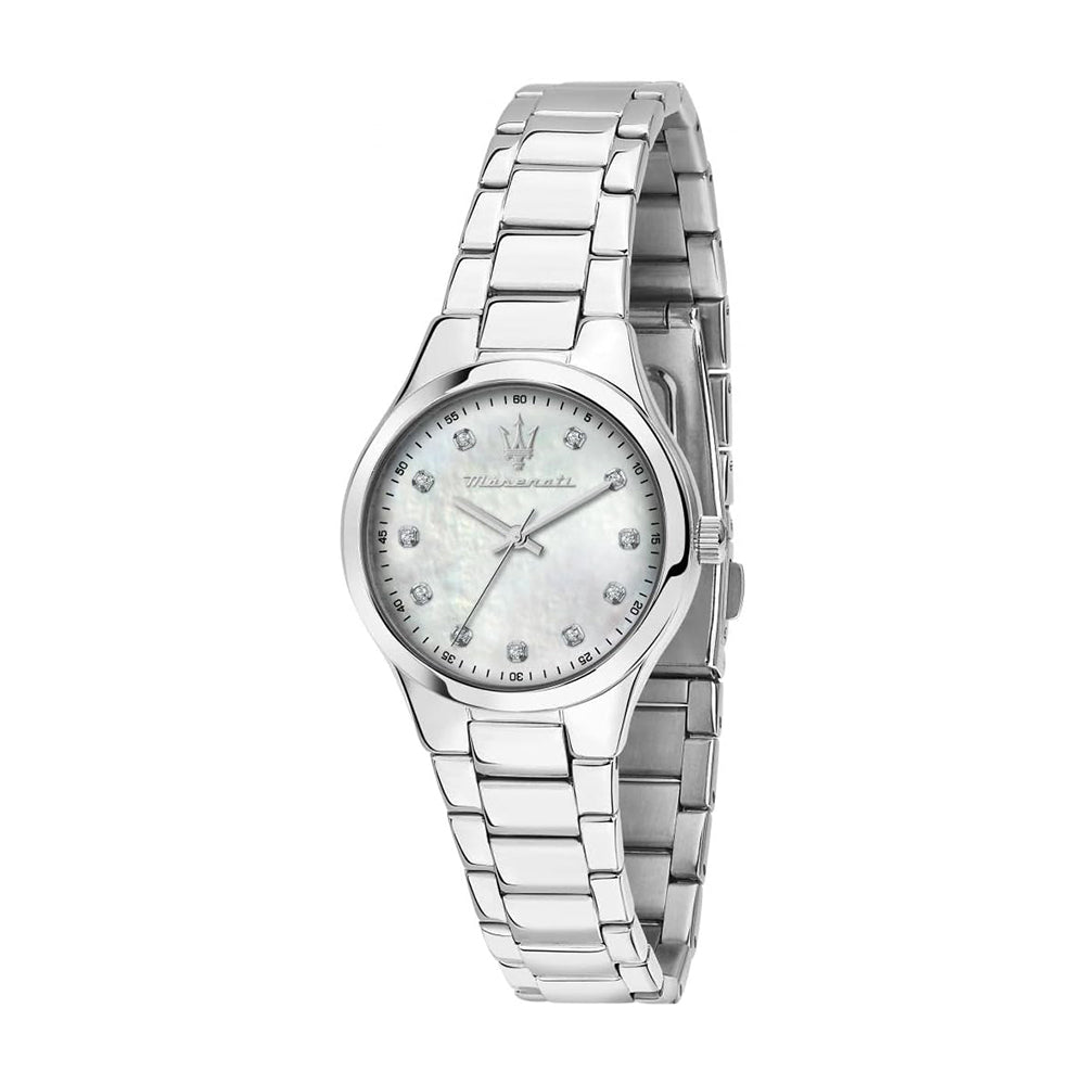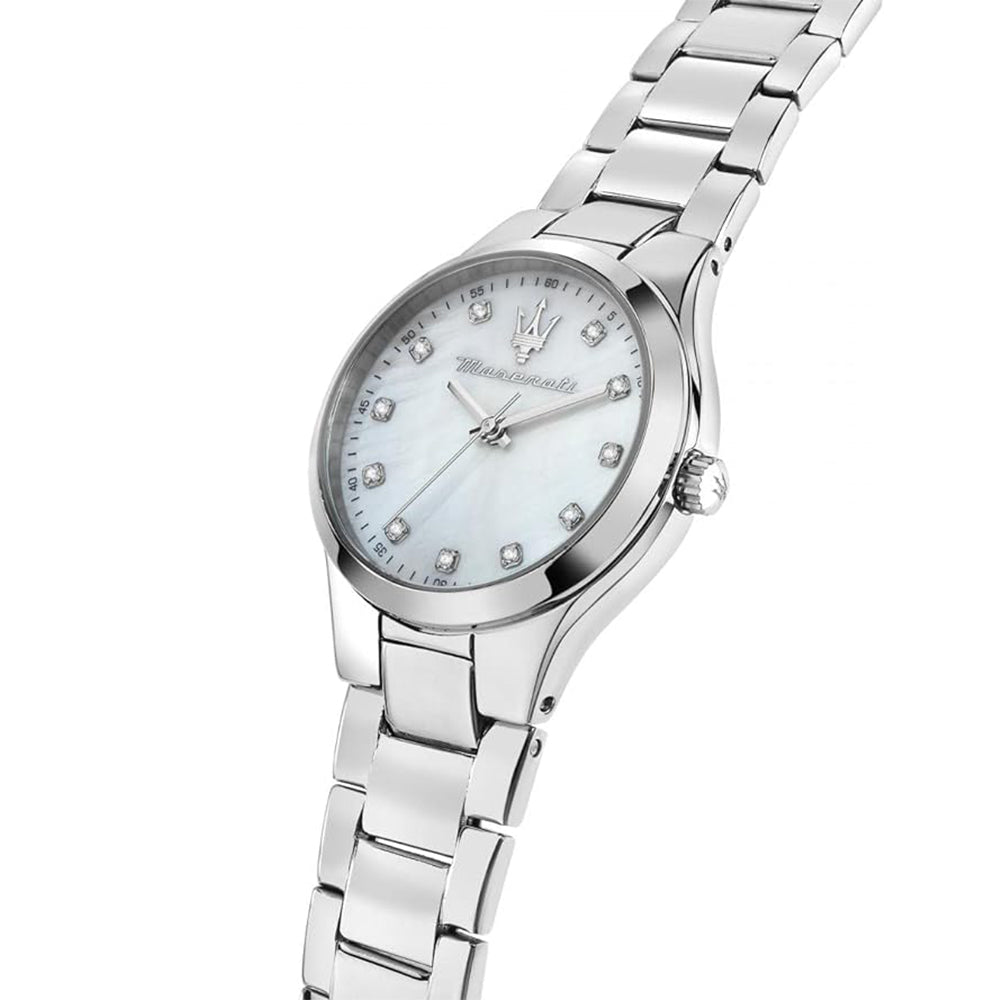 Der Tragekomfort der Maserati Attrazione (Artikelnummer: R8853151504) wird durch das Edelstahlarmband mit Sicherheitsverschluss gewährleistet. Mit einer Breite von 1.60 cm und einem Gewicht von 130 Gramm ist die Uhr angenehm zu tragen und bietet eine perfekte Passform für Damen.