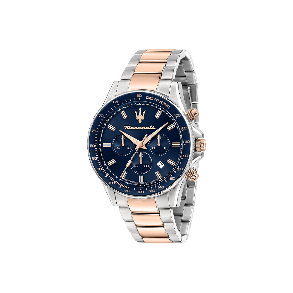 Die Maserati Sfida (Artikelnummer: R8873640022) ist eine Herrenuhr, die Eleganz und Funktionalität in einem zeitlosen Design vereint. Mit einem 44 mm Gehäuse aus Edelstahl und PVD-beschichtetem Roségold, einem auffälligen blauen Zifferblatt und einem robusten Sicherheitsverschluss, bietet diese Uhr nicht nur einen stilvollen Look, sondern auch höchste Zuverlässigkeit. Ausgestattet mit einem Quarzwerk und einer Wasserdichtigkeit bis 10 ATM, ist die Maserati Sfida sowohl für den Alltag als auch für besondere Anlässe geeignet.Tragekomfort