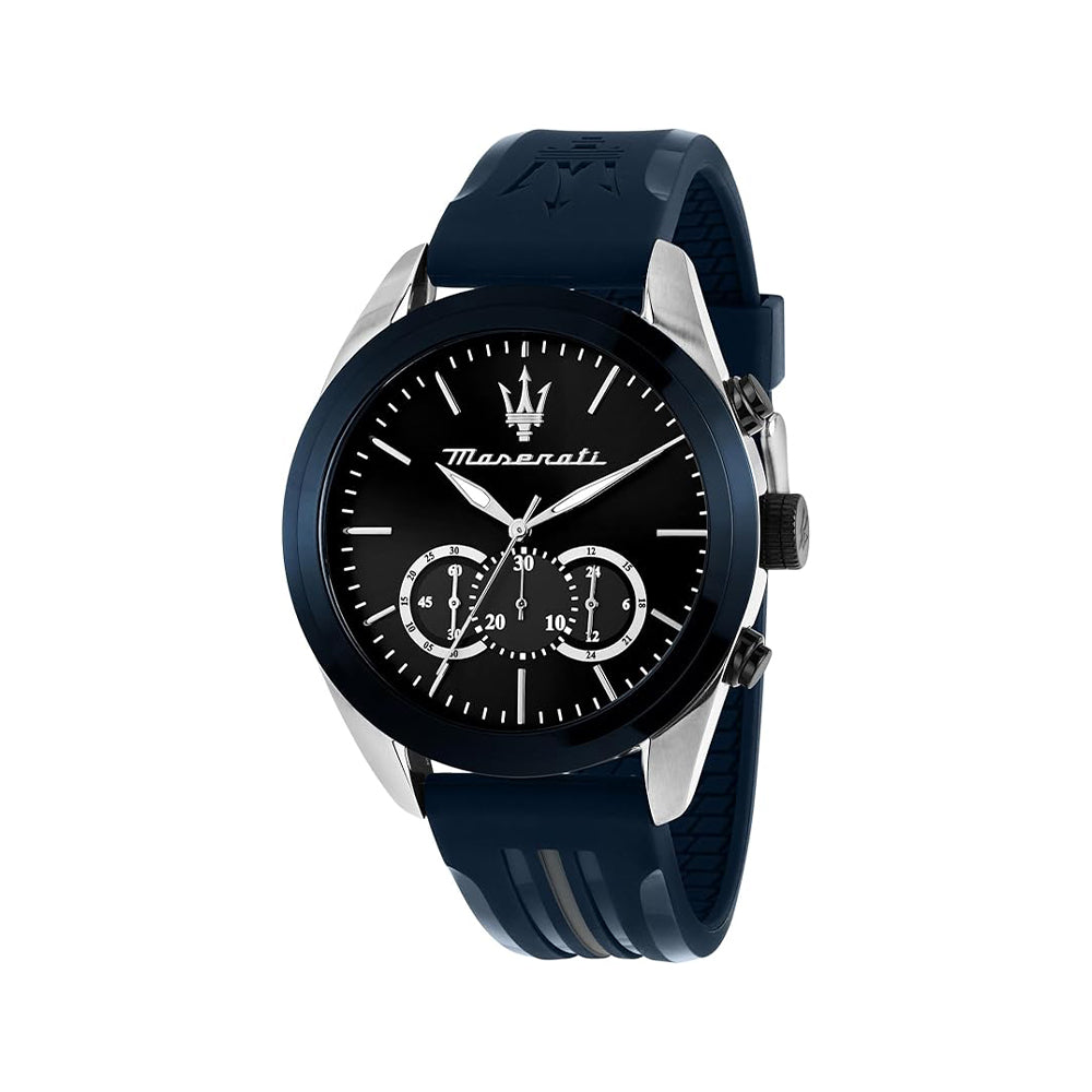 Die Maserati Traguardo bietet außergewöhnlichen Tragekomfort durch ihr ergonomisches Design und hochwertige Materialien. Das Edelstahlarmband und der praktische Schnallenverschluss sorgen für einen sicheren Halt und eine angenehme Passform. Das leichte Gewicht von nur 90 Gramm macht sie zu einem komfortablen Begleiter für den ganzen Tag. Die Kombination aus eleganter Ästhetik und durchdachtem Tragekomfort macht diese Uhr zu einem idealen Accessoire für anspruchsvolle Herren.Farbdetails