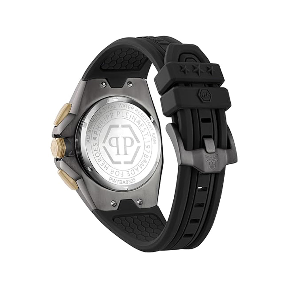 Die Philipp Plein Hyper Sport Uhr (Artikelnummer: PWTBA0323) ist die ideale Wahl für sportbegeisterte Menschen, die Funktionalität und Design schätzen. Mit einem Gehäusedurchmesser von 44mm und einer Wasserdichtigkeit von 5 ATM ist sie perfekt für den Alltag geeignet und hält auch sportlichen Aktivitäten stand.