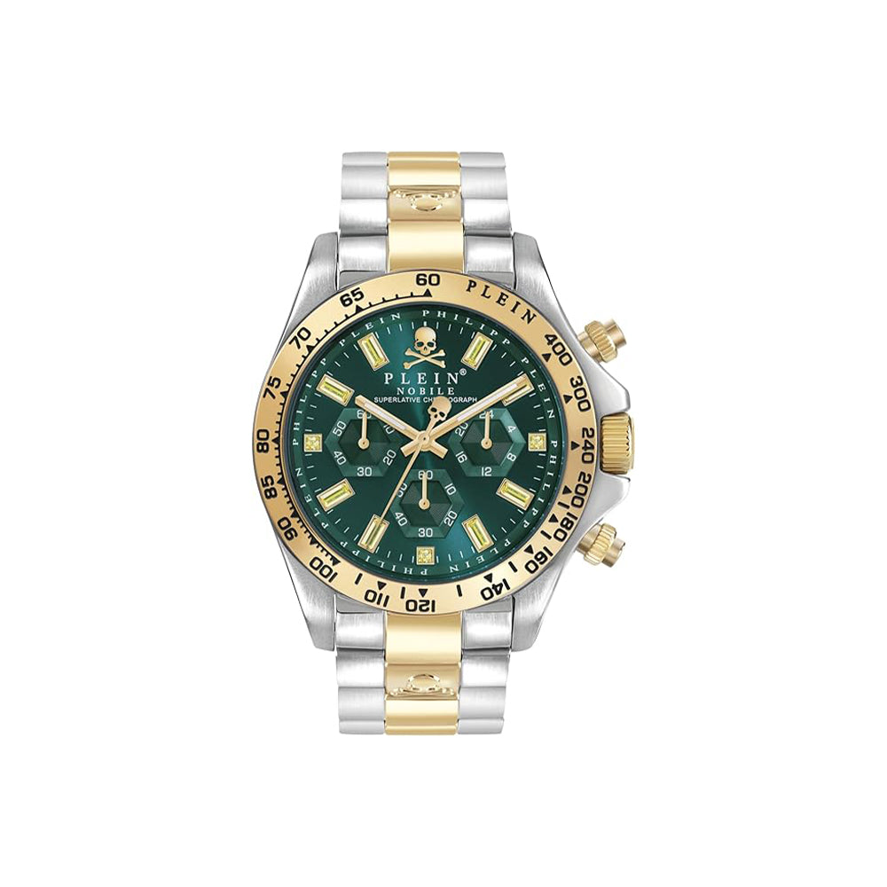 Die Philipp Plein Nobile Wonder ist der Inbegriff von Luxus und Exklusivität. Mit ihrem opulenten Design, das durch den Einsatz von Steinen im oberen Ring und das markante Logo PLEIN bei der 12 Uhr-Position veredelt wird, zieht diese Uhr alle Blicke auf sich. Das edle Ziffernblatt, gepaart mit dem eleganten Edelstahlgehäuse, macht sie zu einem zeitlosen Klassiker. Diese Uhr ist nicht nur ein zuverlässiger Chronograph, sondern ein wahres Statement für Männer, die das Besondere suchen. Die Philipp Plein Nobile Wonder setzt Maßstäbe in der Welt der Luxusuhren.Share