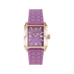 Die Philipp Plein Offshore Square Uhr (Artikelnummer: PWMAA0322) ist eine elegante Damenuhr mit einem quadratischen Edelstahlgehäuse. Sie verfügt über ein lila Silikonarmband mit Dornschließe und ein lila Zifferblatt, das durch Mineralglas geschützt ist.