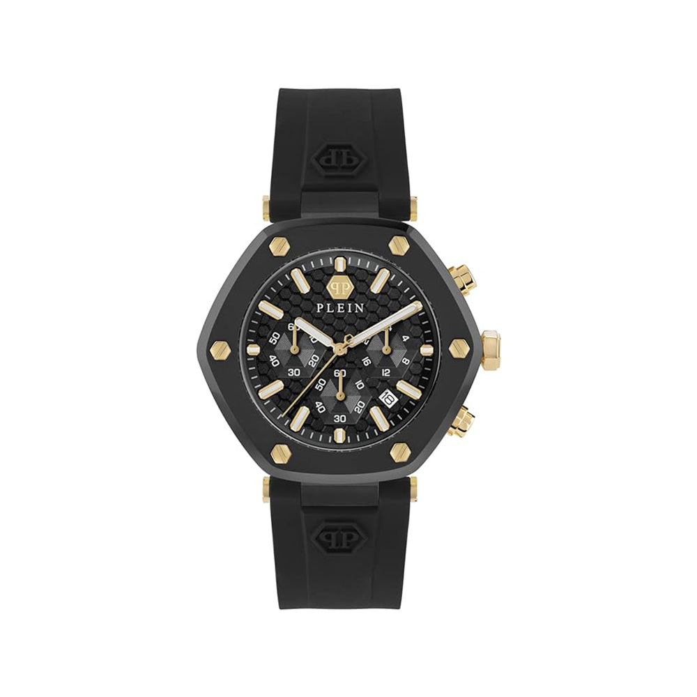 Die Philipp Plein The Hexagon Chronograph Uhr (Artikelnummer: PWZBA0223) bietet einen hervorragenden Tragekomfort dank des leichten Silikonarmbands und des hypoallergenen Stahls. Das Quarzuhrwerk sorgt für präzise Zeitmessung und die Chronographenfunktion für zusätzliche Funktionalität.