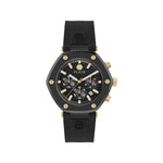 Die Philipp Plein The Hexagon Chronograph Uhr (Artikelnummer: PWZBA0223) besticht durch ihr markantes Design und die hochwertigen Materialien. Das runde Edelstahlgehäuse in IP-Schwarz mit schwarzer Lünette hat einen Durchmesser von ca. 42 mm (ohne Krone) und eine Höhe von ca. 10,5 mm. Das schwarze Zifferblatt mit Chronographenfunktion und das Silikonarmband mit Dornschließe verleihen der Uhr ein sportlich-elegantes Aussehen.