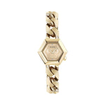 Die Philipp Plein The Hexagon Groumette Uhr (Artikelnummer: PWWBA0323) ist ein elegantes Accessoire, das mit einem goldenen Edelstahlarmband und -gehäuse glänzt.