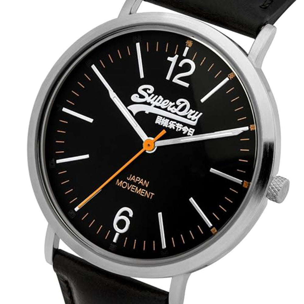 Der Tragekomfort der Superdry Oxford Leather Quarzuhr ist außergewöhnlich. Das hochwertige schwarze Lederarmband passt sich sanft dem Handgelenk an und bleibt auch bei längerem Tragen bequem. Dank der leichten Bauweise mit nur 45 Gramm und der sicheren Dornschließe sitzt die Uhr fest, ohne das Handgelenk zu belasten – perfekt für den täglichen Einsatz.